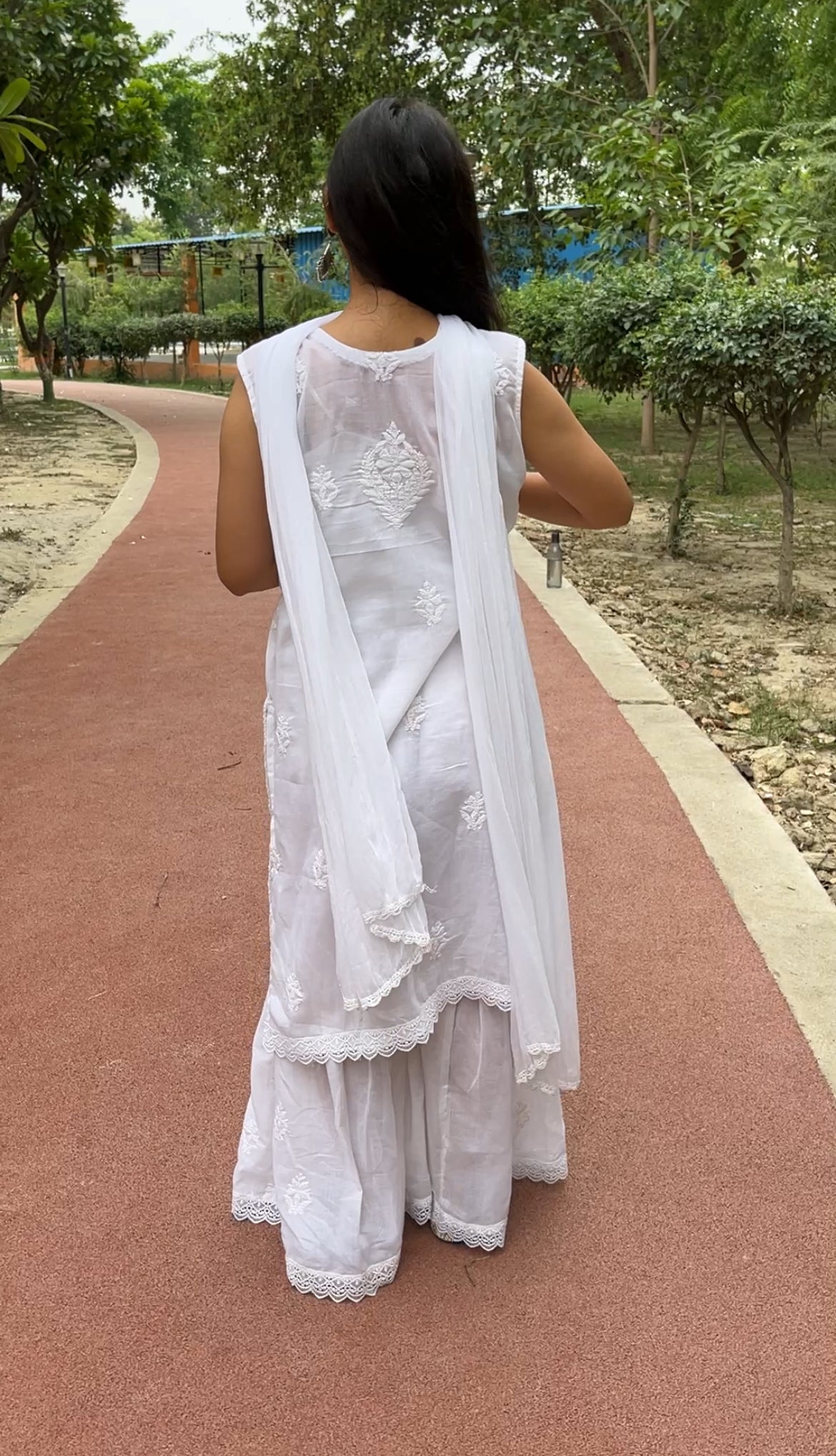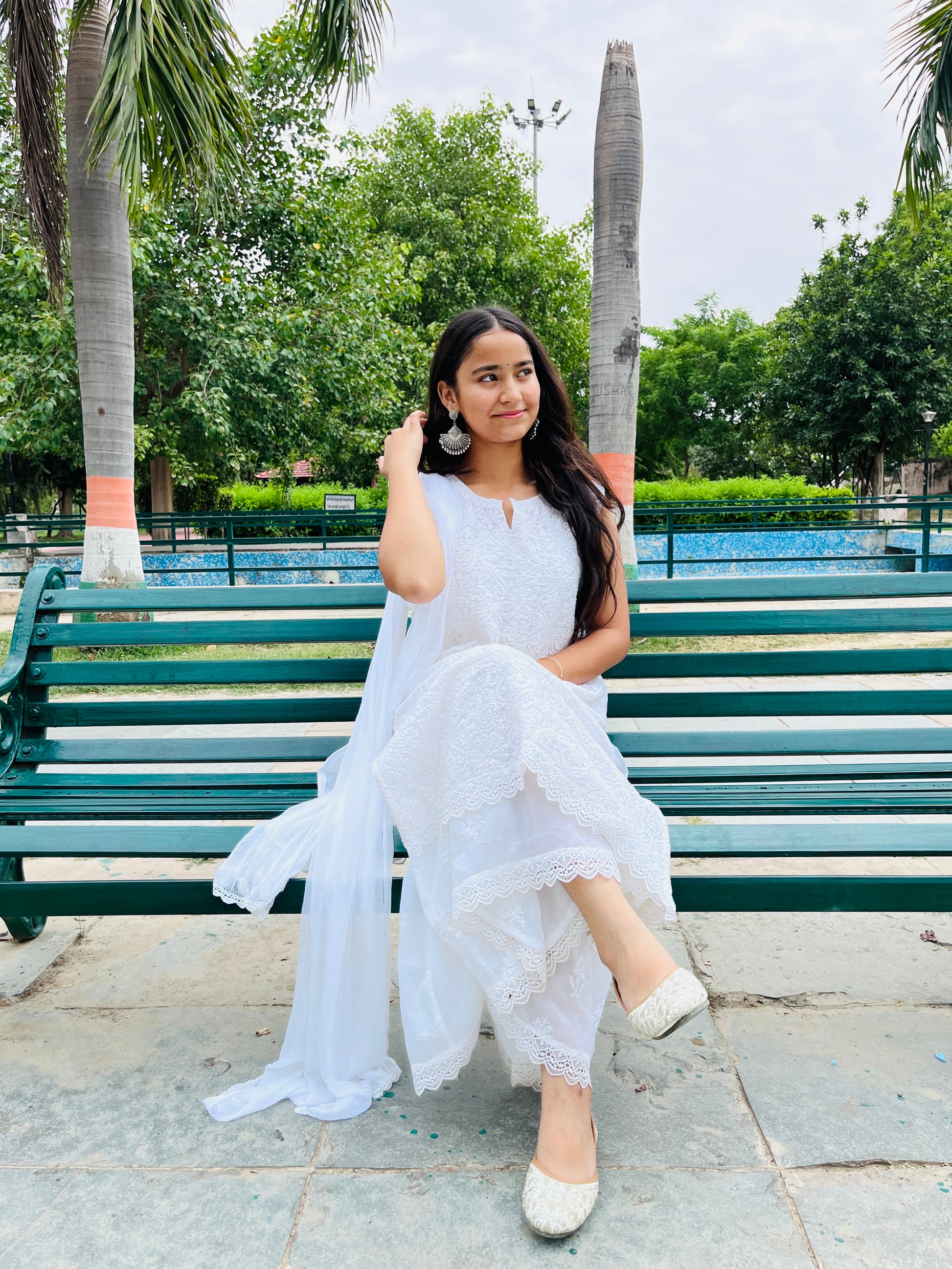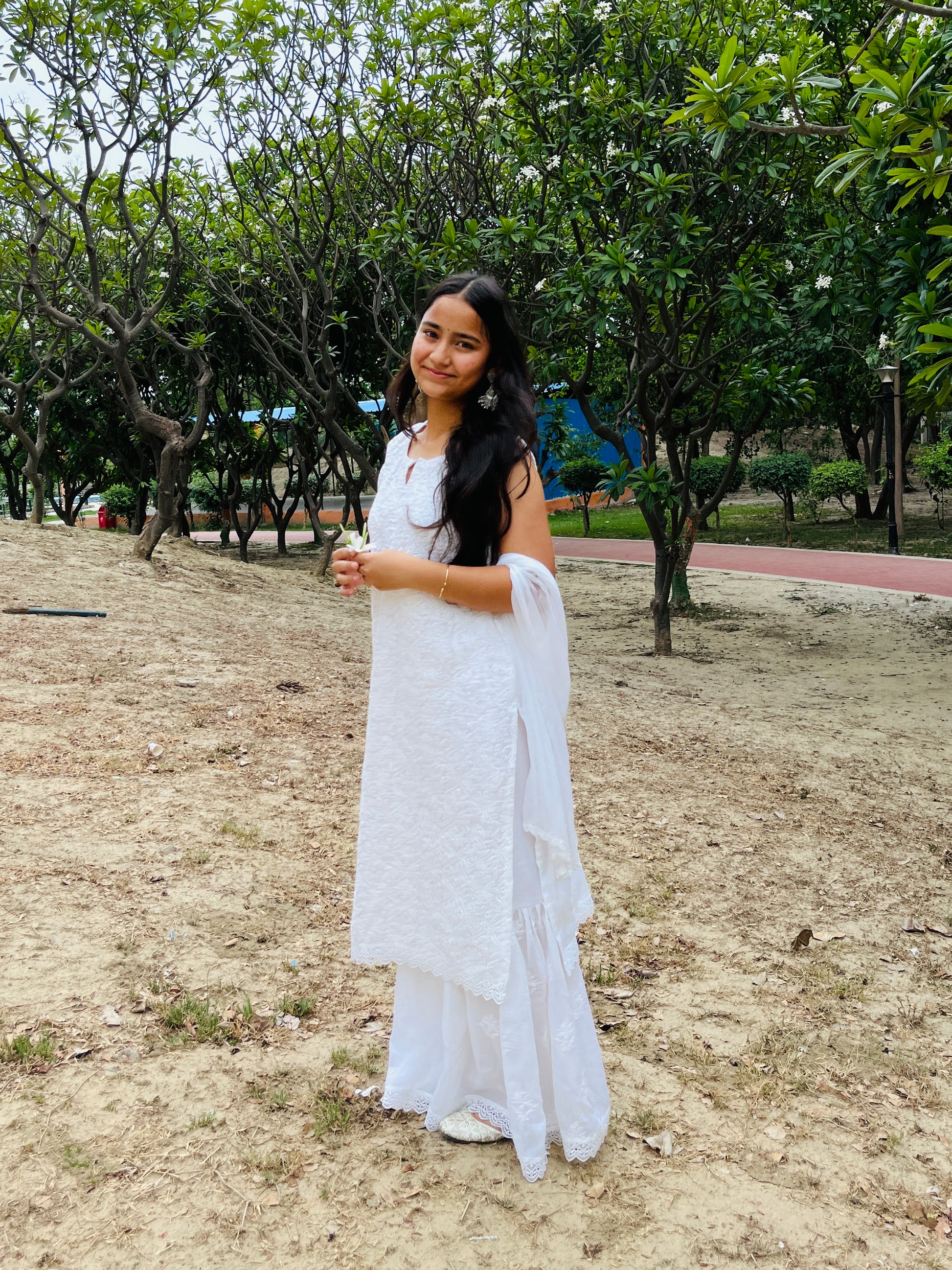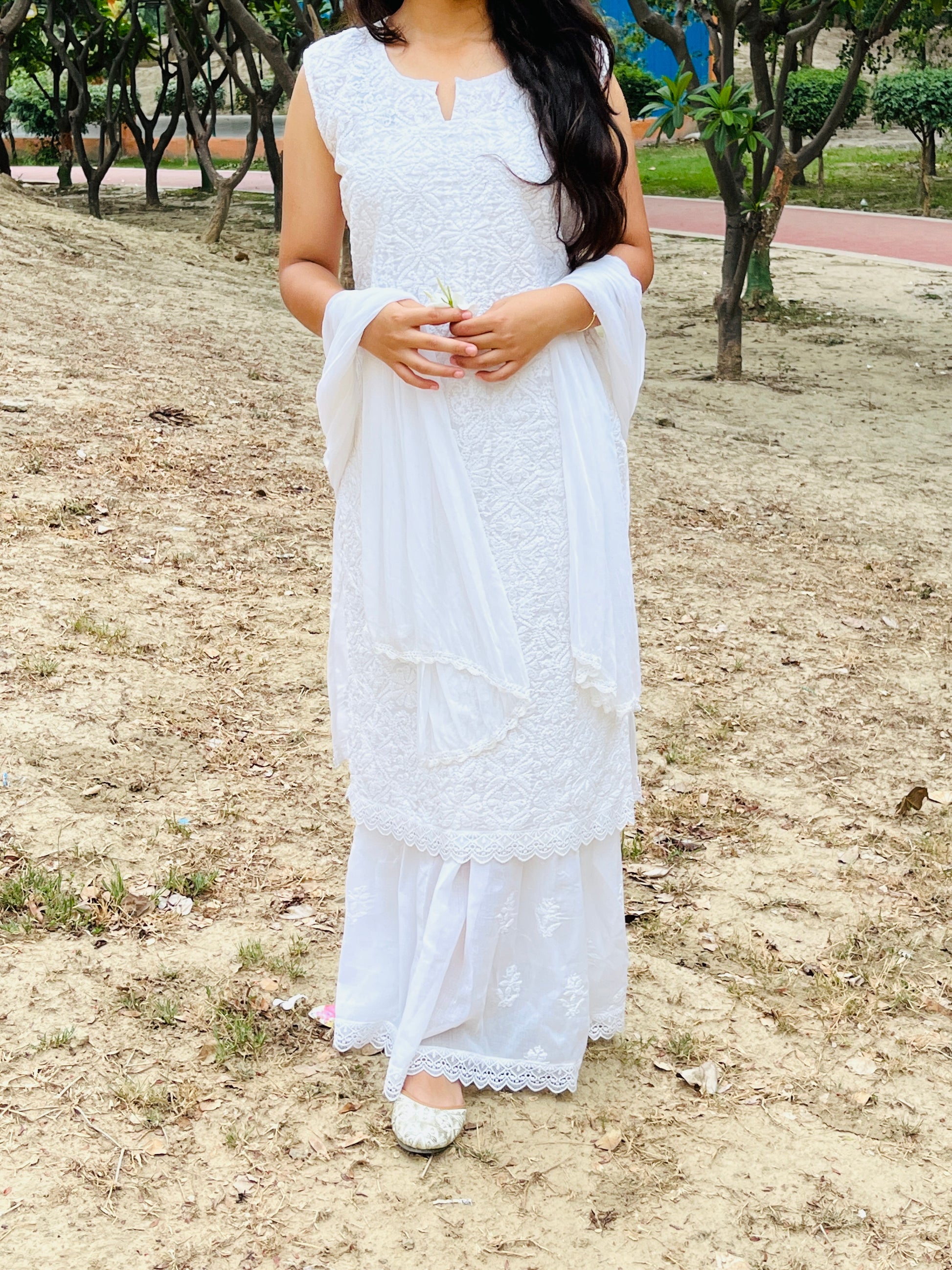 EKA Handcrafted Chikan Royal White Chikan Sharara Set.