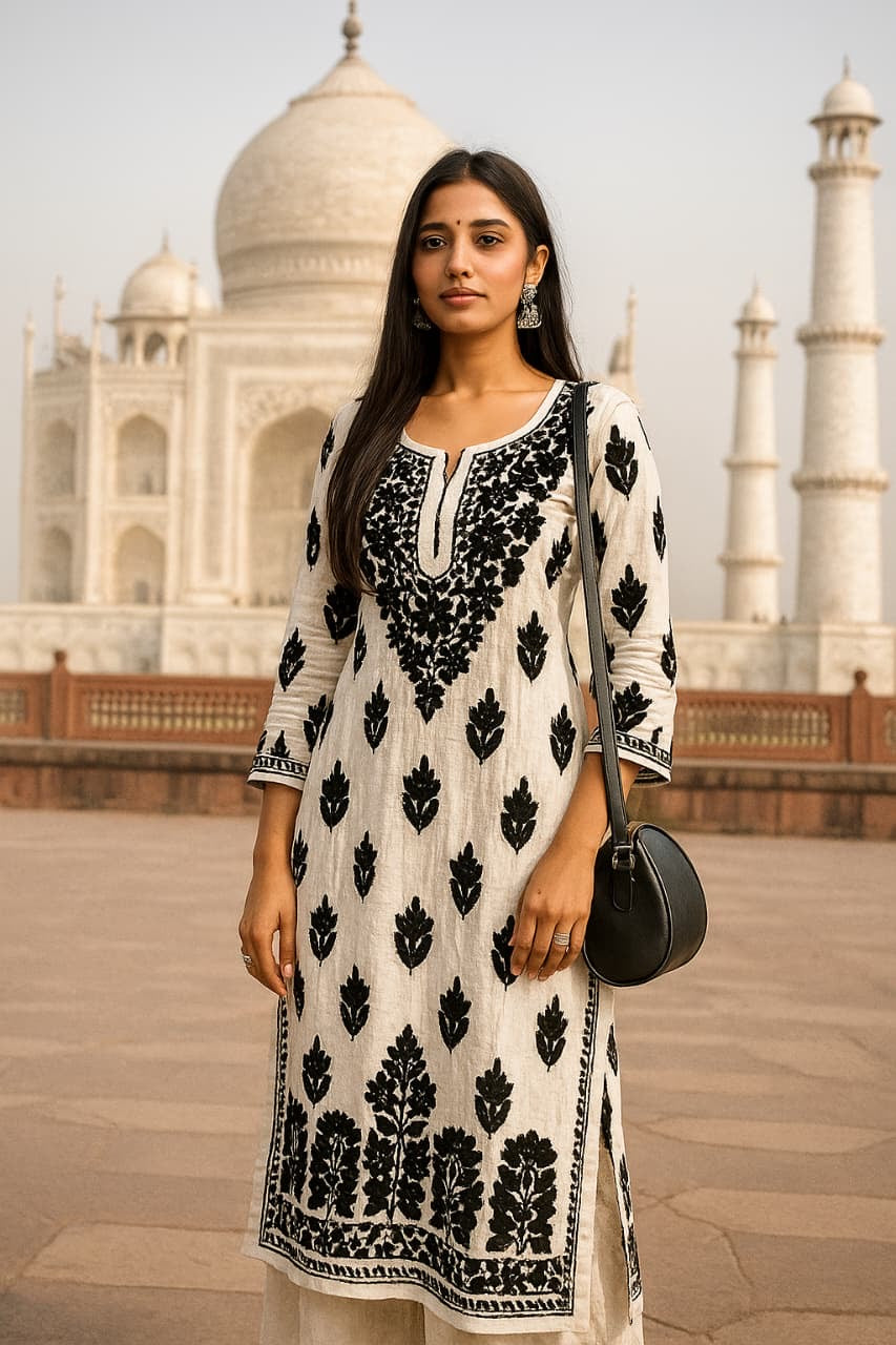 Eka Handmade Soft Chanderi Chikankari Kurti.